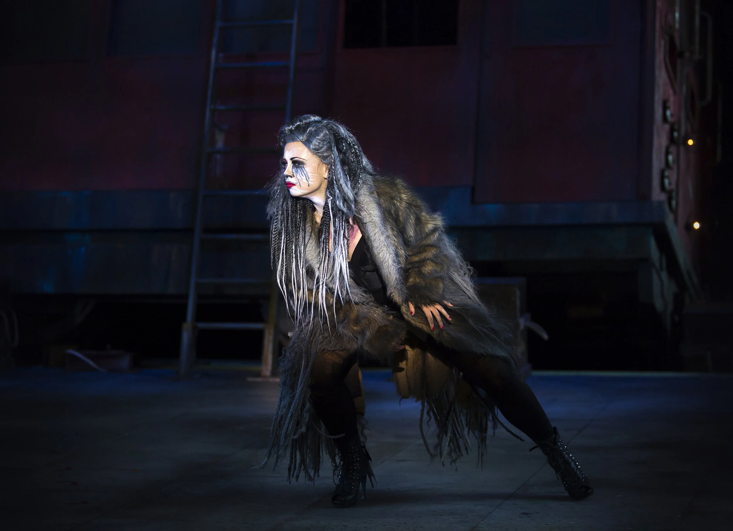 “Witcomb’s set is a rundown Underground station during the war, complete with a full-sized, partially derailed tube train, and it becomes a thrilling playground for the characters to perform their breathless routines. There’s much less in the way of whiskers and fur – these are more hinted at than made literal – and the costumes reflect wartime themes. So we get Munkustrap dressed in airman’s uniform, Mr Mistoffelees doubling as a cheery milkman and Rum Tum Tugger as a grey-marketeer spiv.”